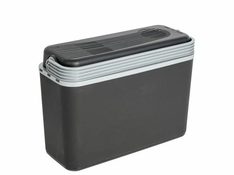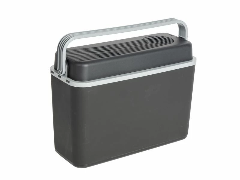 Een lichtgewicht en zeer compacte koelbox met een 12 volt aansluiting. Deze koelbox heeft een compact formaat. Hierdoor is deze koelbox ideaal achter de autostoel, in de fietstas, mee naar het strand of naar het park. Met het handvat wordt het deksel geblokkeerd om de koelbox af te sluiten.