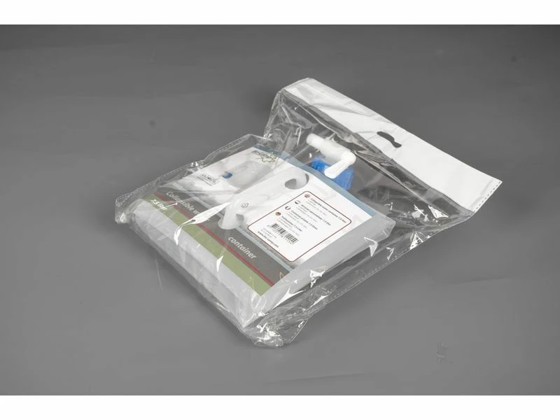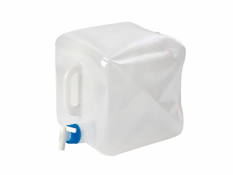 Een opvouwbare jerrycan. Ideaal om mee te nemen onderweg of voor gebruik op de camping. Na gebruik kan de jerrycan compact worden opgevouwen en opgeborgen. De jerrycan is voorzien van een handig tapkraantje, een stevig handvat en een ophangoog.