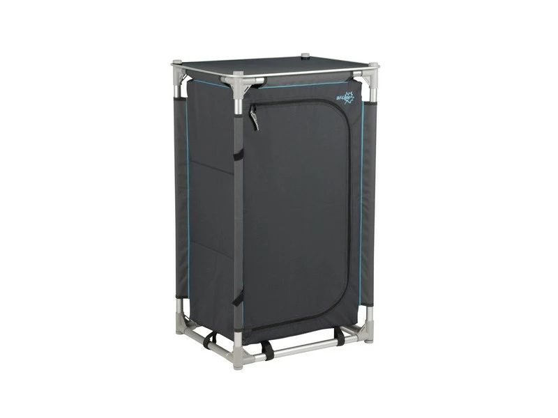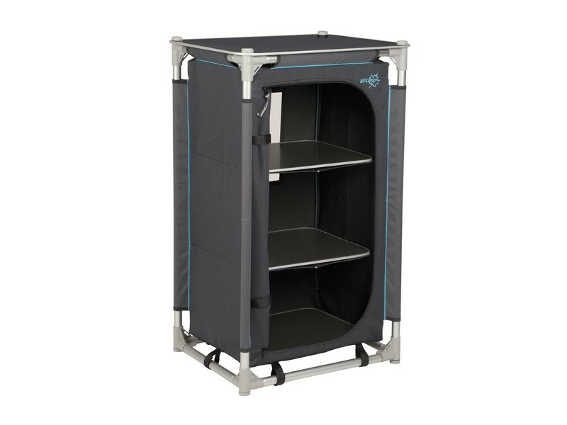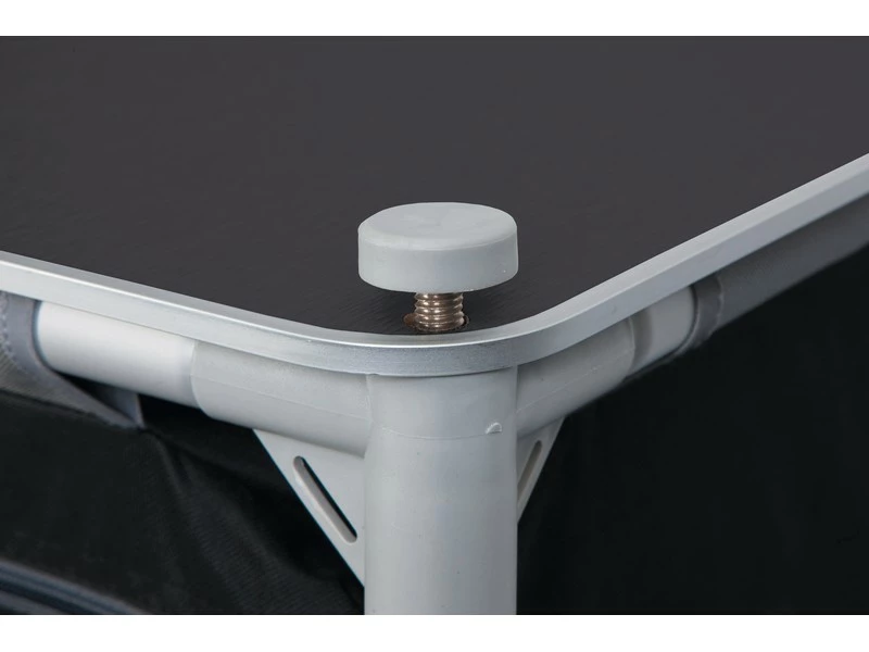 Een luxe en zeer stabiele legkast. Deze kast beschikt over 3 stevige legplanken en 2 zijvakken. Voorzien van een luxe 2-tone 600 denier polyester hoes en een oplegblad. De verstelbare poten zijn afzonderlijk af te stellen zodat de legkast op iedere ondergrond stabiel staat. Wordt geleverd in een draagtas.