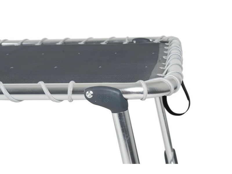 Een zeer comfortabel en extra hoog ligbed. De leuning van dit ligbed is in 5 standen verstelbaar en dit ligbed biedt optimaal comfort door de elastiek bevestiging van het doek. Daarnaast is dit ligbed extra breed, extra lang en extra hoog voor een makkelijke in- en uitstap. Na gebruik zeer plat opvouwbaar en makkelijk te dragen aan de handgrepen. Ingeklapt (lxbxh): 81x68x21 centimeter. Maximale belasting: 140 kilogram.