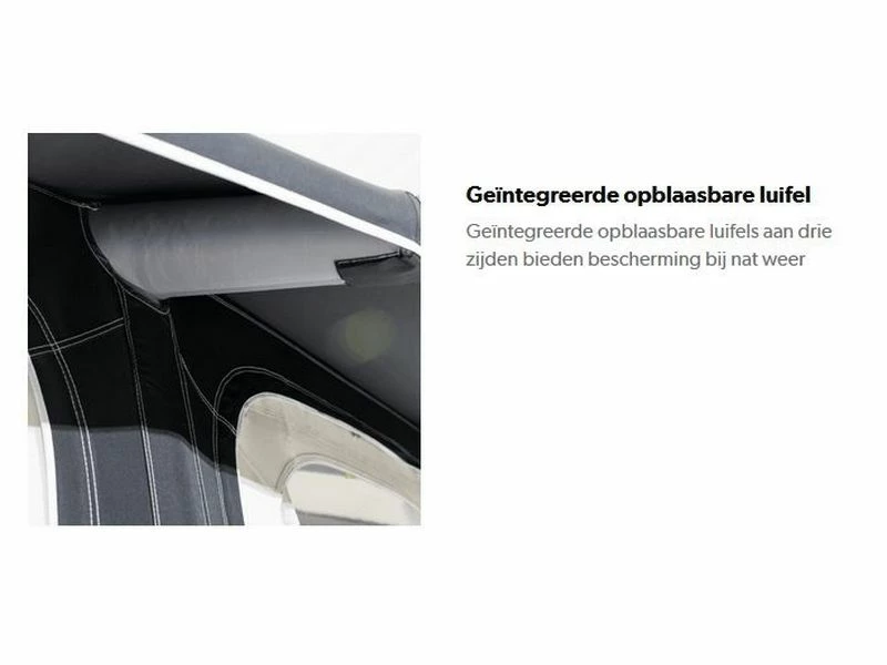 Opblaasbare drive-away voortent, aansluithoogte: 180-215 cm.
