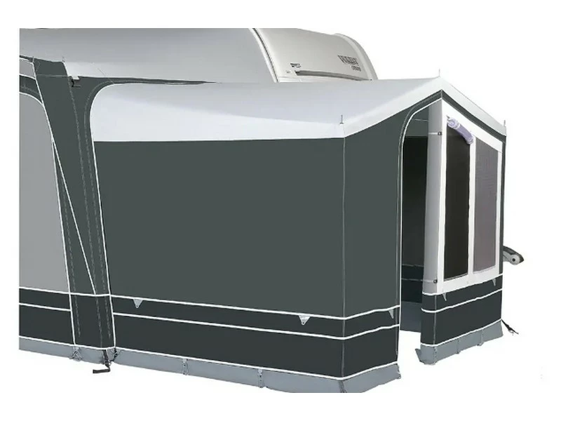 Zijwanden: beide panelen zijn neerrolbaar, uitritsbaar en voorzien van een deur