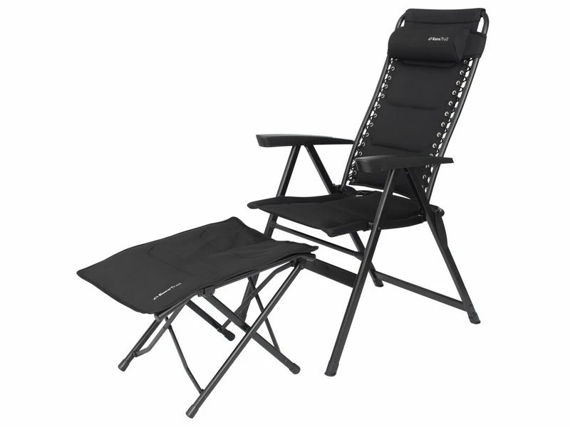 Universele voetenbank. Met deze voetenbank verandert u uw campingstoel in een comfortabele relaxstoel. Het stalen frame is voorzien van het gepolsterde 3-D Mesh doek en is tevens als krukje te gebruiken (max belasting 90kg).