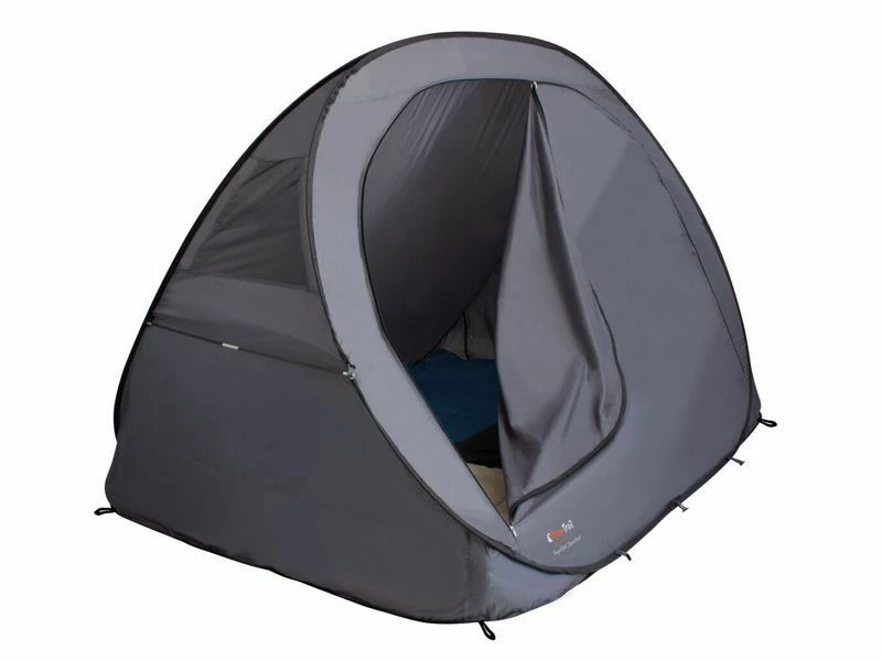 Deze binnentent is geschikt voor 2 personen met hun bagage en ideaal om te gebruiken als extra slaapplek in uw tent, voortent of bustent. Vervaardigd van een ventilerend ongecoat polyester met een PE-vast bodem. De donkere kleurstelling zorgt ervoor dat het lang lekker donker blijft in de tent. Volledige af te sluiten voor een optimale privacy.