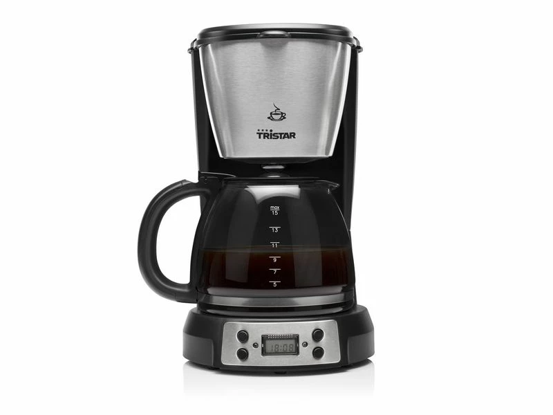 Het Tristar CM-1248 Koffiezetapparaat is een luxe en stijlvol koffiezetapparaat. Het is uitgevoerd in het zwart en afgewerkt met roestvrijstalen accenten. De digitale timer en het display bieden extra gebruiksgemak. Met een ruime inhoud van 1.5 liter kun je 12-15 kopjes koffie tegelijkertijd zetten.