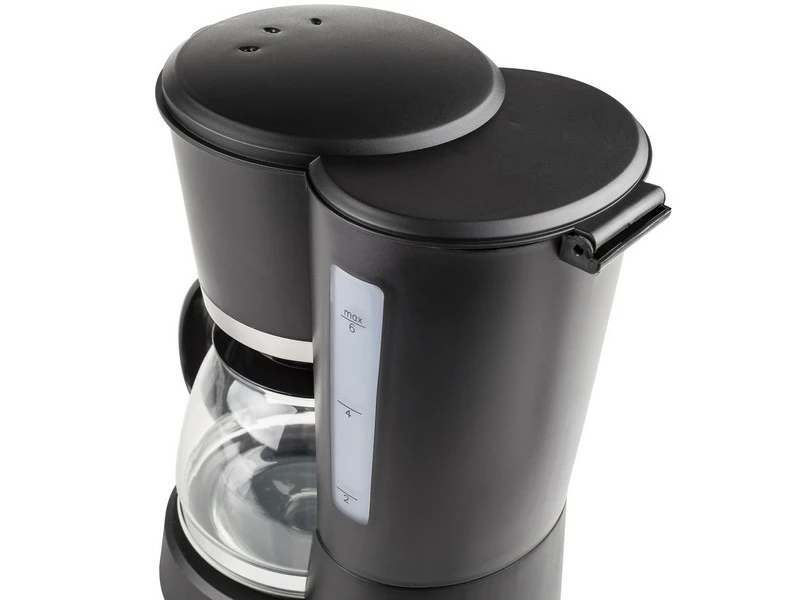 Compact stijlvol koffiezetapparaat geschikt voor 6 kopjes koffie per sessie. De fraaie afwerking in matzwart en RVS maakt het tot een plaatje in de keuken of op de camping (550W).