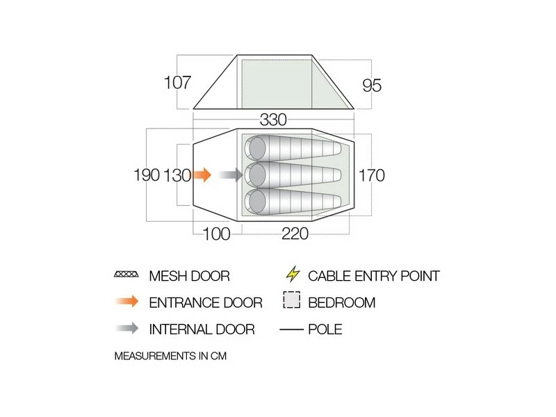 Vango Protex® 70 denier polyester buitentent, waterkolom 3000 mm – zeer waterdicht, duurzaam en betrouwbaar materiaal. Exclusief bij Vango.
